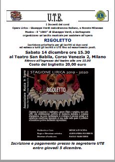 Milano Milano Novate Garbagnate Bollate Novate Dove Visita Rigoletto Incontro Festa di Natale Festa di Natale Festa di Natale Cosa Evento 1/11/20-12-19 14-12-19 15:30 19-12-19 15:00 17-12-19 17:00 18-12-19 15:45 19-12-19 16:00 Quando